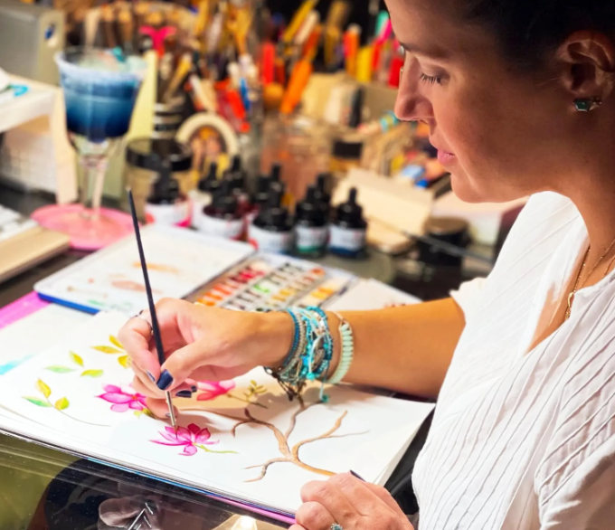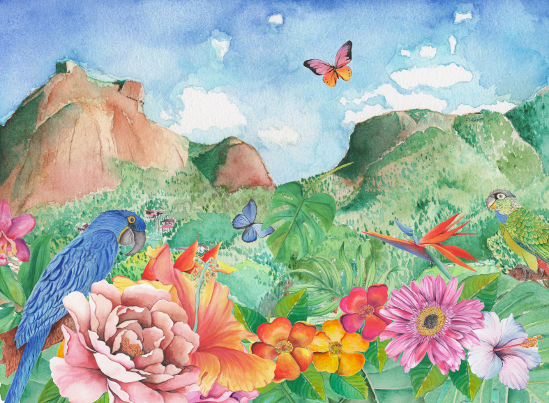 Ela se dedica à sua arte em aquarela criando as estampas deslumbrantes, fluidas e únicas para os SWAYs, Kimonos e Chapéus da OMNIA. Fran também criou a estampa da nossa camiseta Pedra da Gávea.